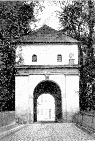 sina samlingar I porten, tillbyggdes denna en våning, varjämte putsen borttogs och stenplattan med